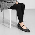 予約:2025AW:スクエアトゥ メリージェーン フラット(m10310)ブラックグリッター