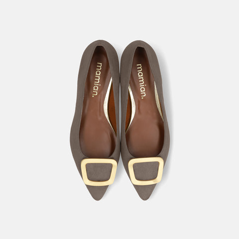 Special Item SALE 15%OFF:2025AW:ポインテッドトゥ バックル付き フラットシューズ(4785)グレージュS