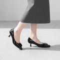 オーバル型のパーツが特徴的な5cmヒールのポインテッドトゥパンプス。プライベートからお仕事、オケージョンにも最適な一足。